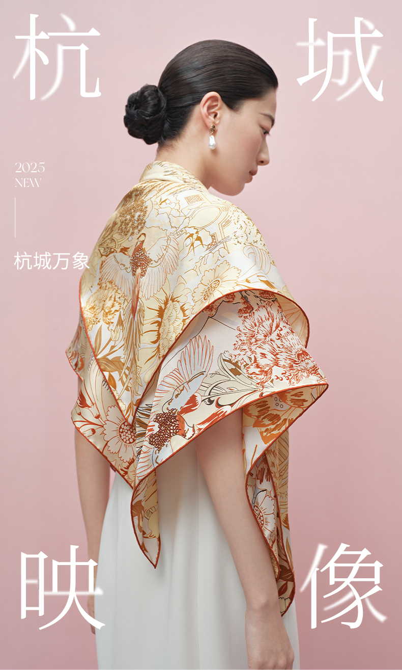 双面印花大方巾 杭城万象