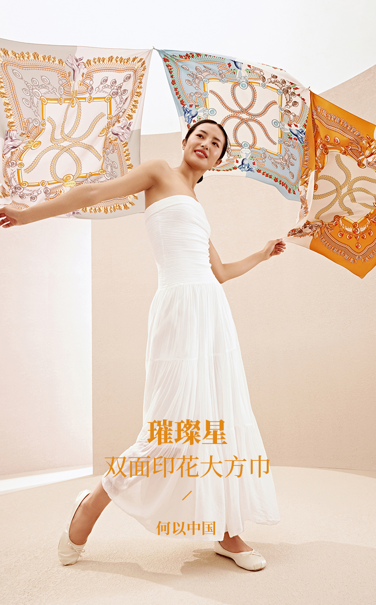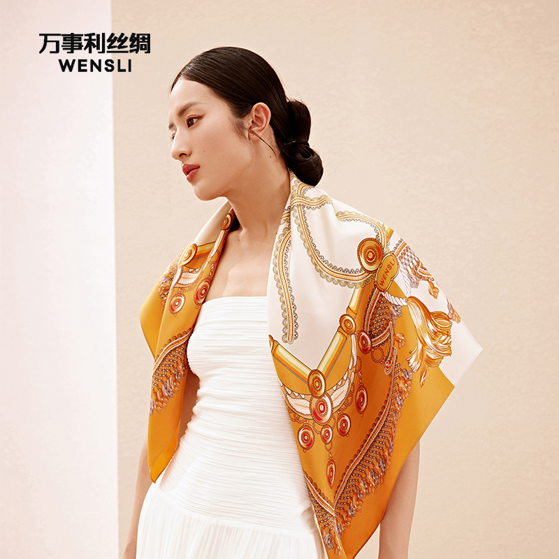 万事利wensli 春夏新品上新 100%桑蚕丝双面印花大方巾-璀璨星
