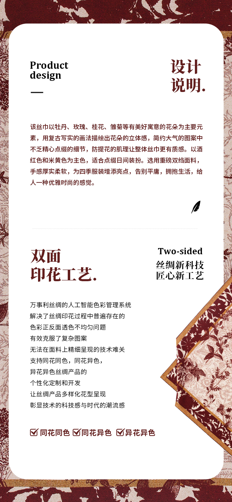 万事利丝绸 2023春夏新品 双面印花大方巾-花开富贵