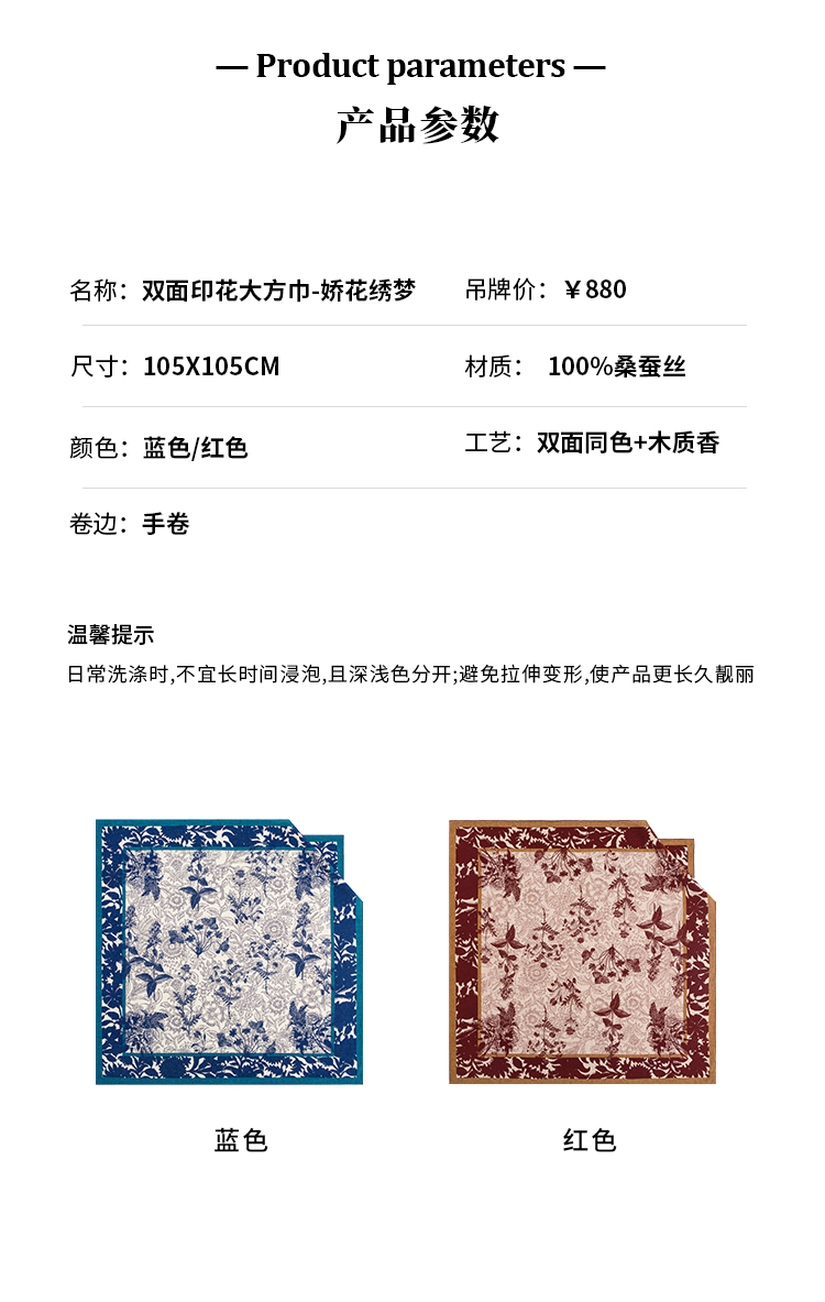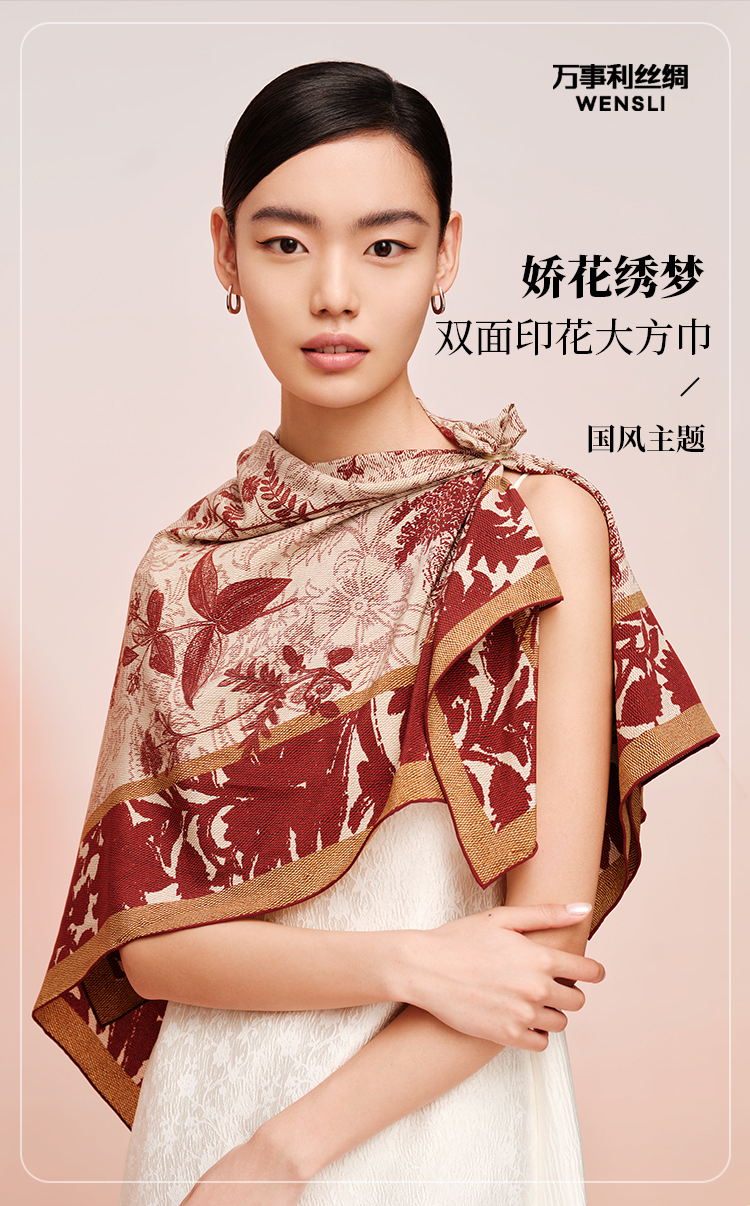 万事利丝绸 2023春夏新款 双面印花大方巾-娇花绣梦