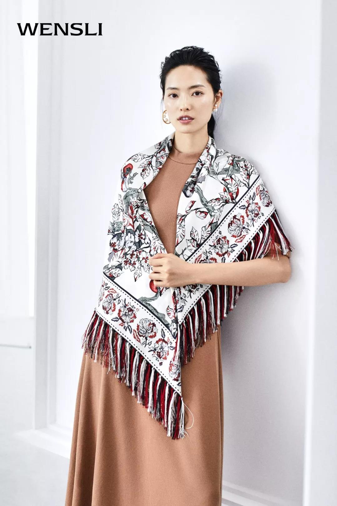 万事利双面印花超大方巾-喜柿