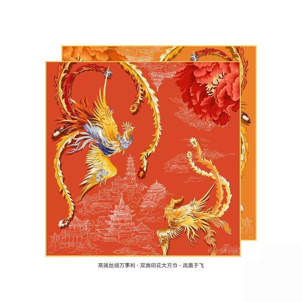 双面印花大方巾-凤凰于飞