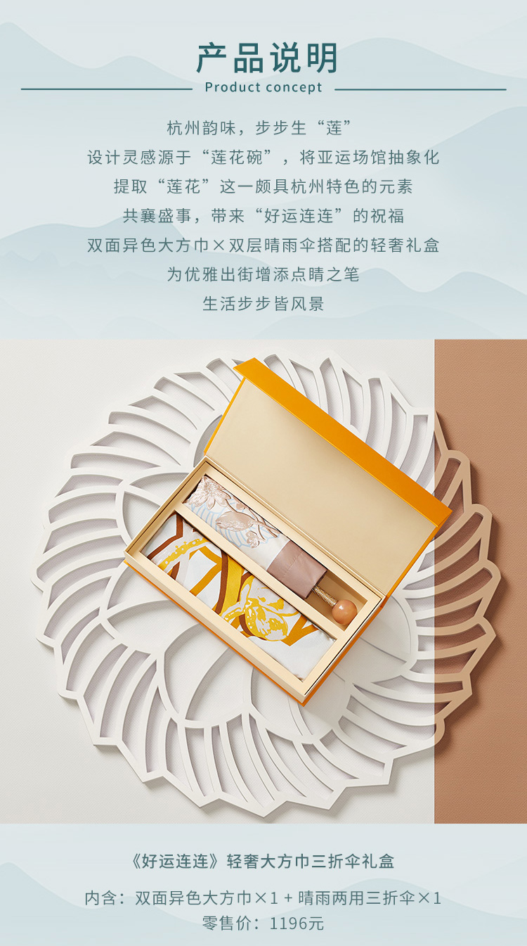 万事利丝绸 好运连连轻奢三折丝伞套装