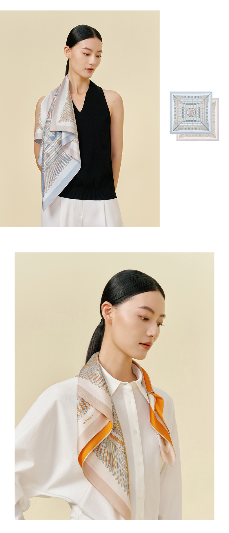穹结-双面印花中方巾