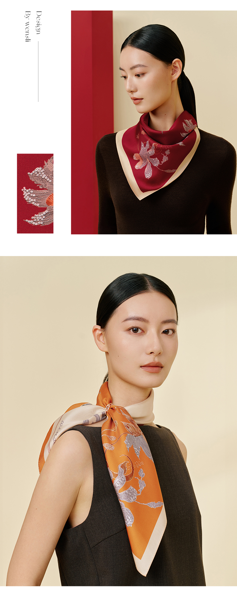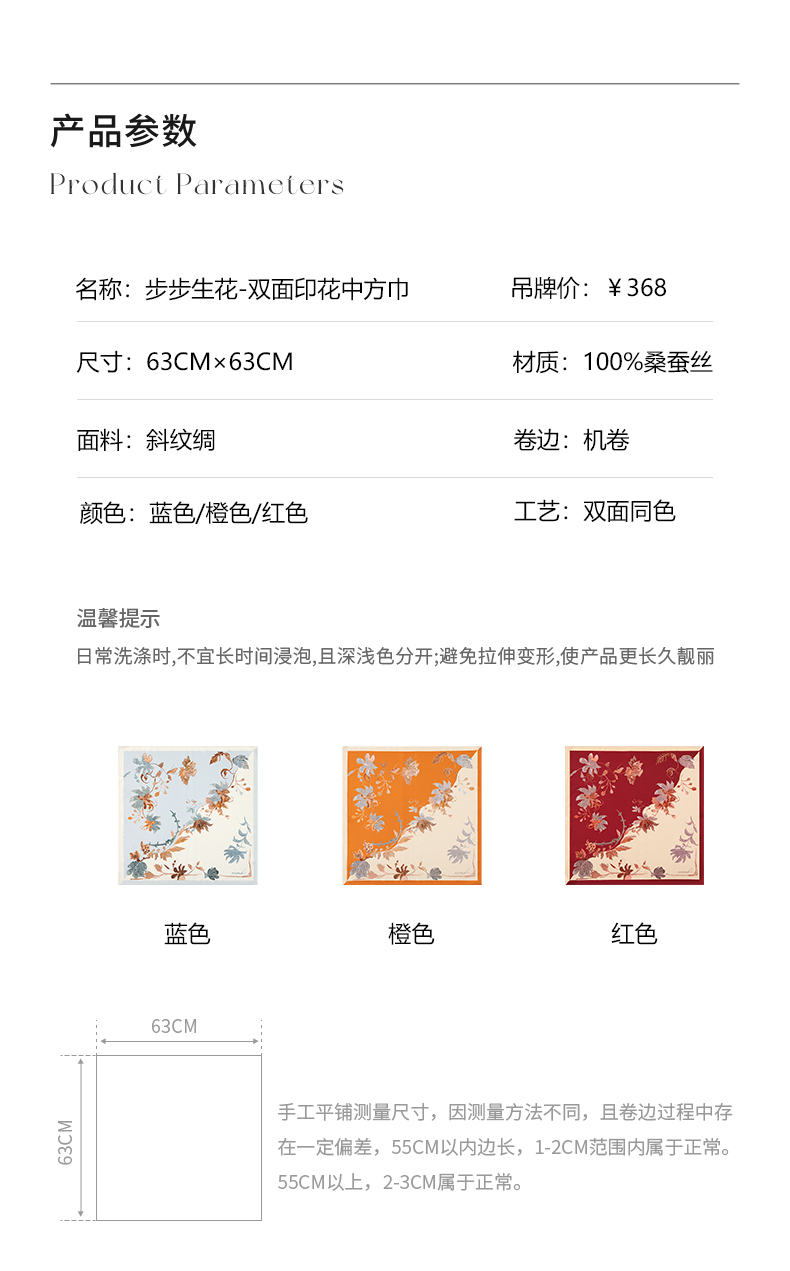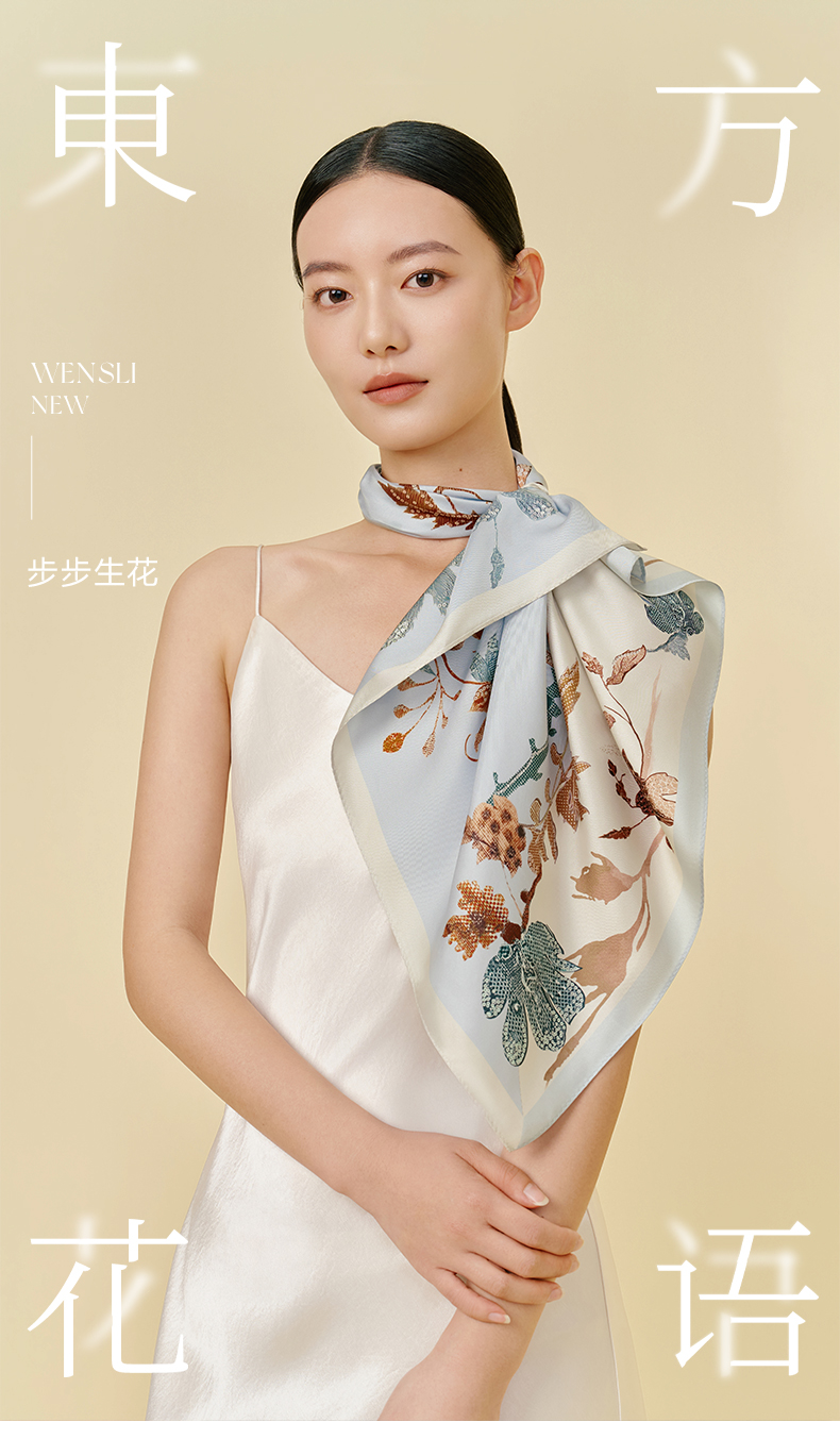 步步生花-双面印花中方巾