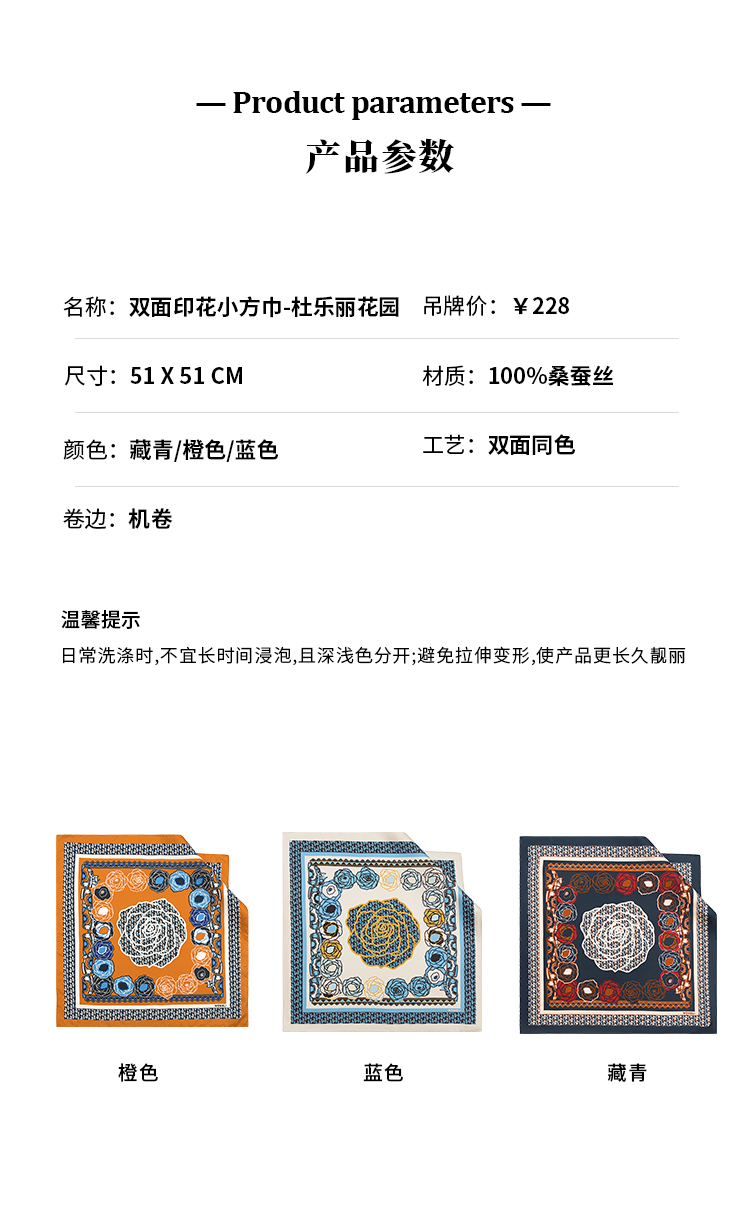 万事利 2022年秋冬款 双面印花小方巾-杜乐丽花园