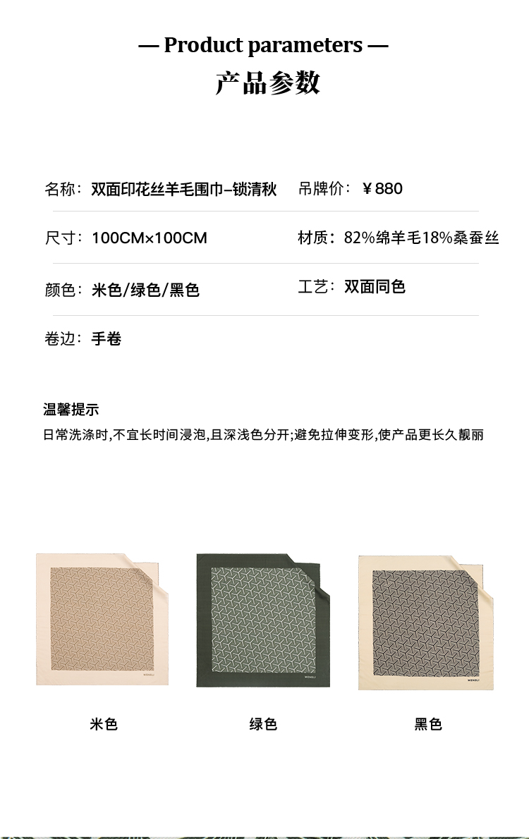 万事利 2022年秋冬款 双面印花丝羊毛围巾-锁清秋