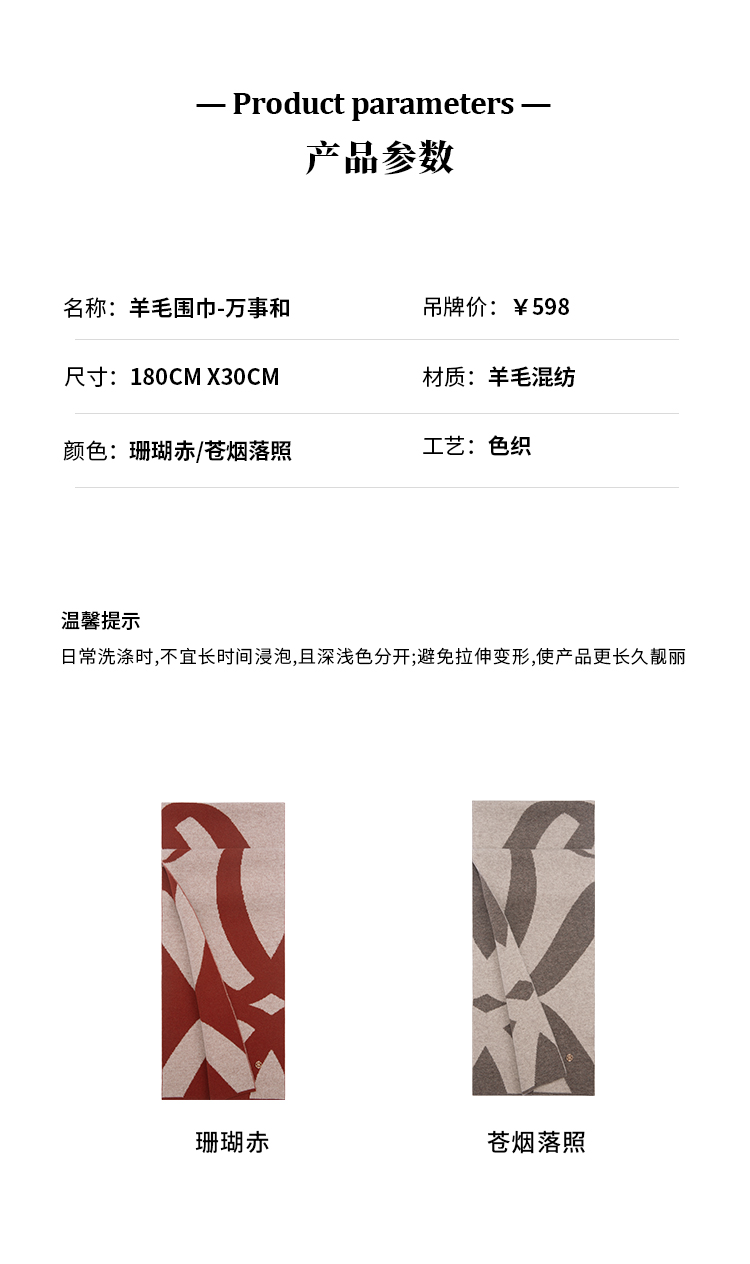 万事利丝绸 秋冬新品 羊毛围巾-万事和