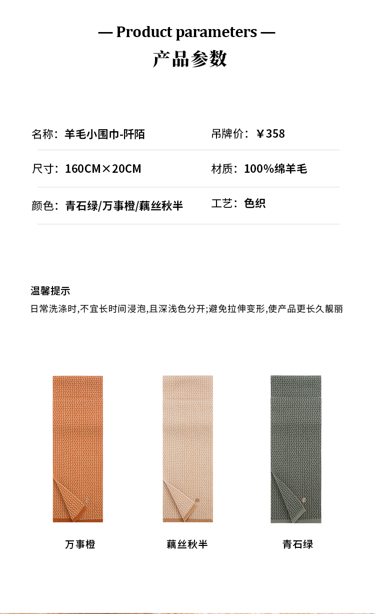 万事利丝绸 新品 羊毛小围巾-阡陌