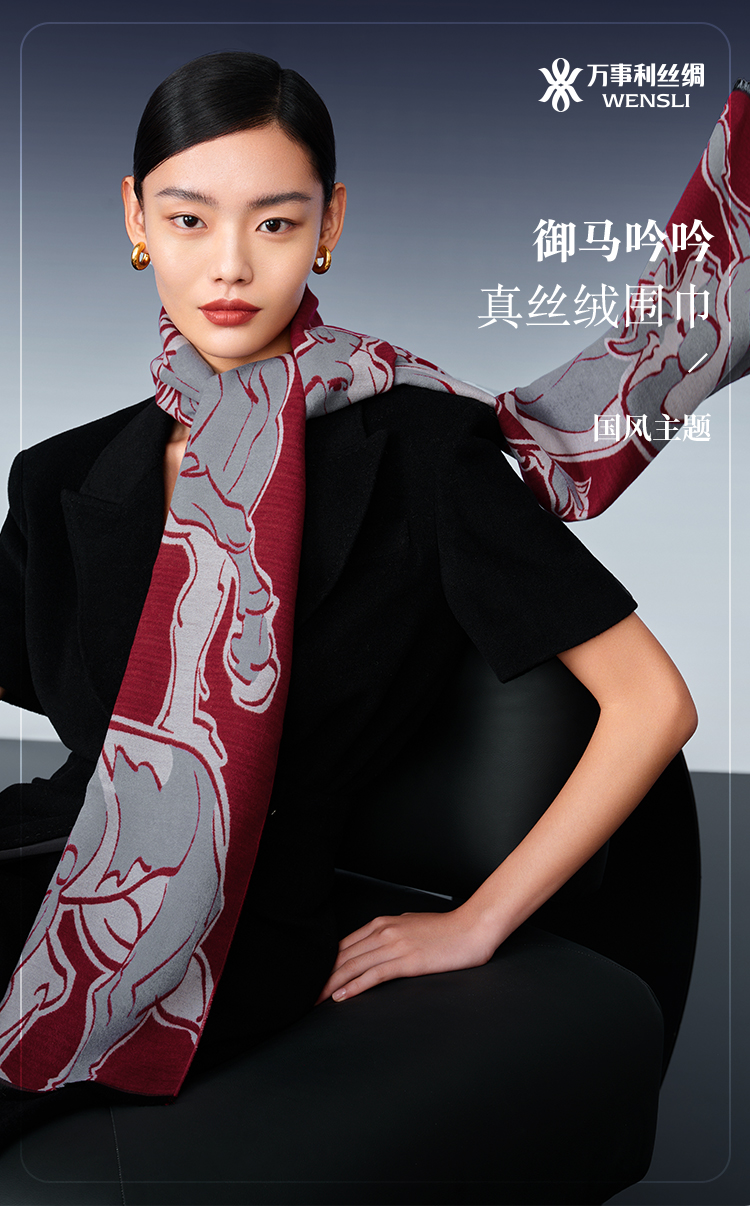 万事利丝绸 真丝绒围巾-御马吟吟